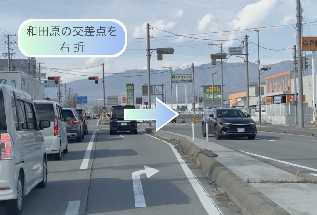 2.コメリ横、和田原の交差点を右折して道なりに進みます