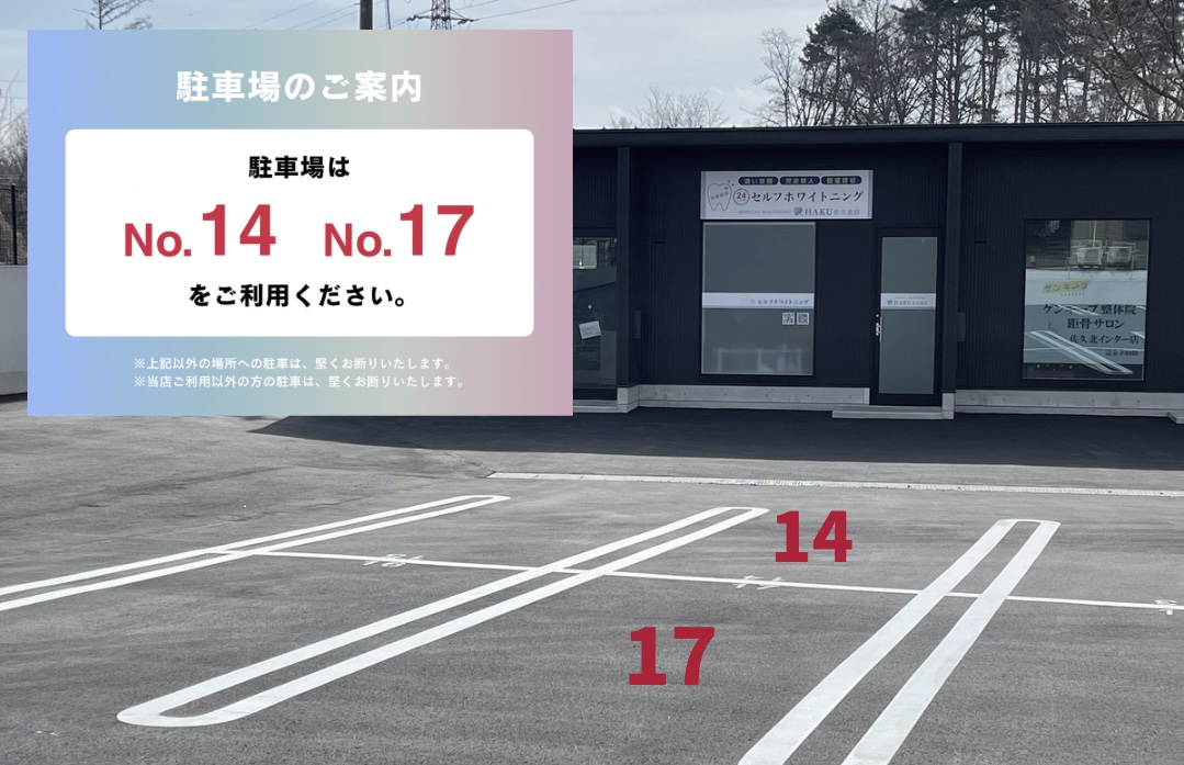 駐車場は店舗手前のNo.14・No.17にお願いします。