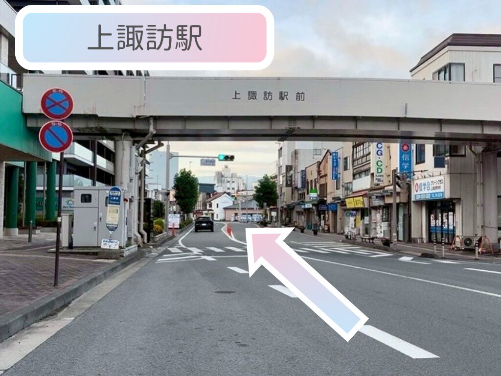 1.上諏訪駅から国道20号を茅野方面へ約2km、道なりにお進みください。