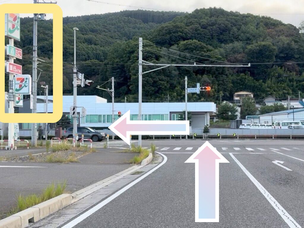 2.「四賀武津」の信号(セブンイレブンが目印!)を左折し